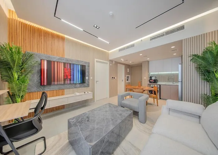 Az Al Jawaher Reception and Convention Centre rendezvényközpont hozzávetőlegesen egy 10 perces kocsiútra, a Sharjah nemzetkozi repülőtér pedig autóval 15 percre van az 1Br Aesthetic Home Aljada - 2 Washrooms - Balcony Sardzsa apartman területétől.